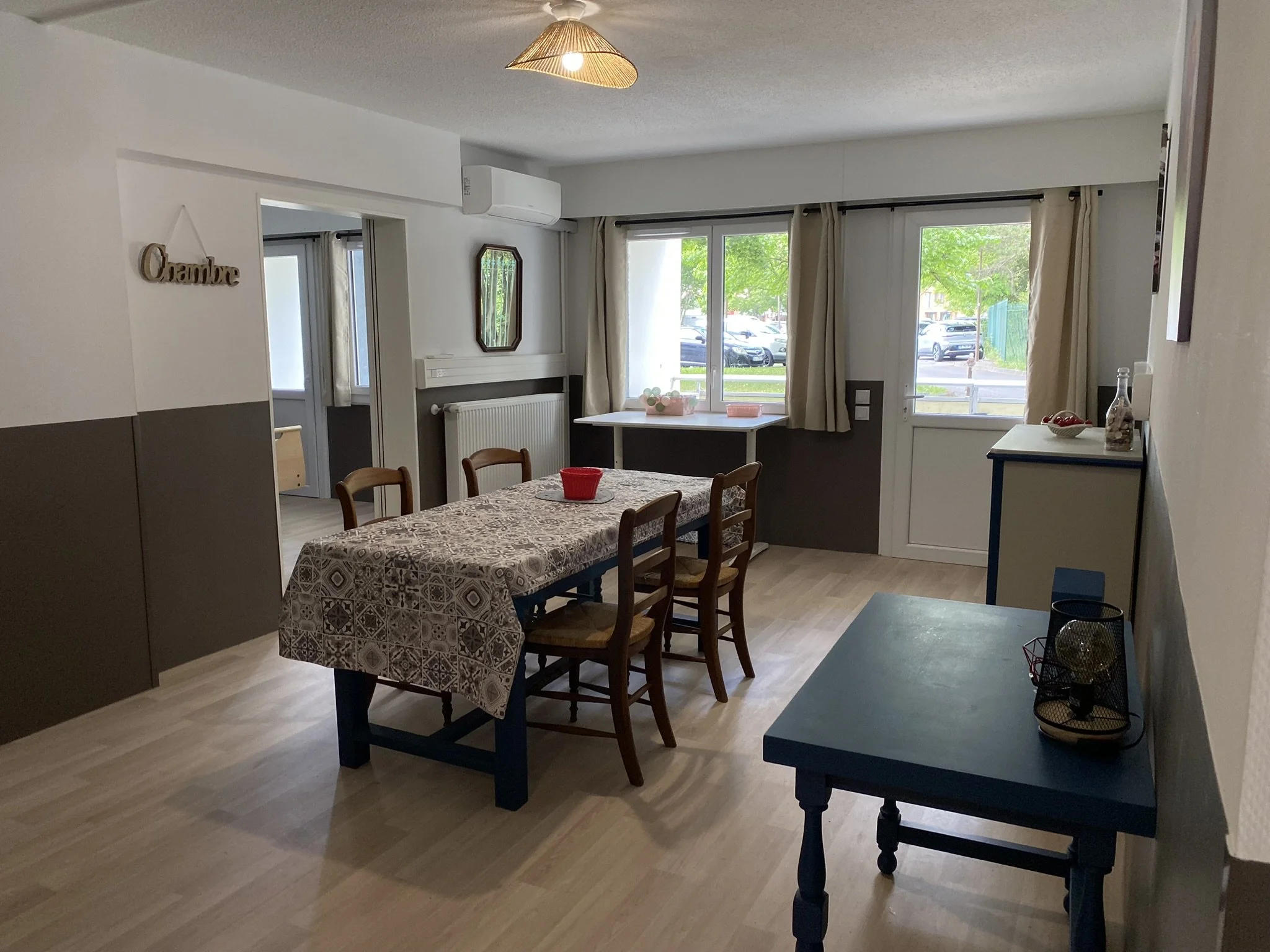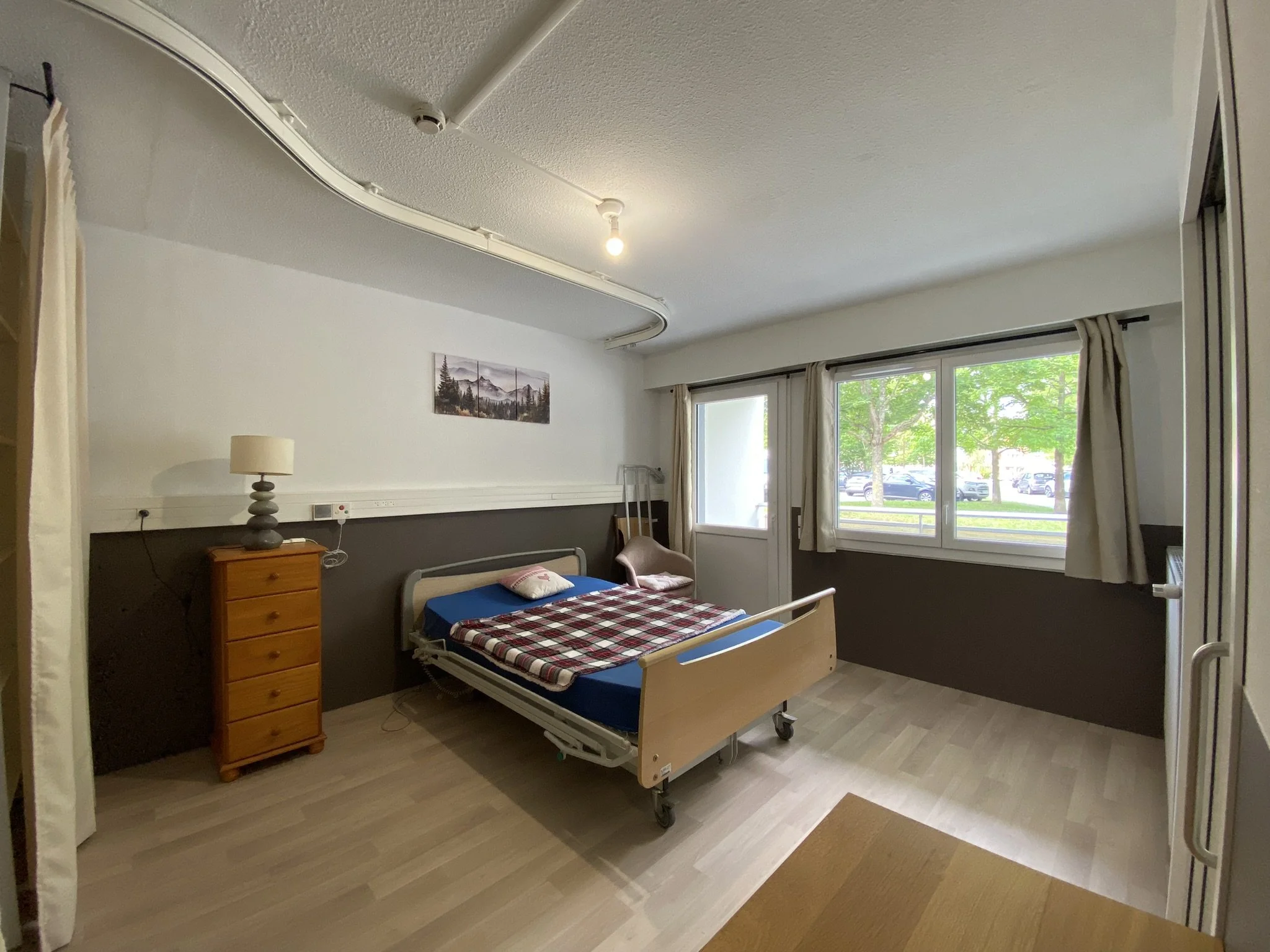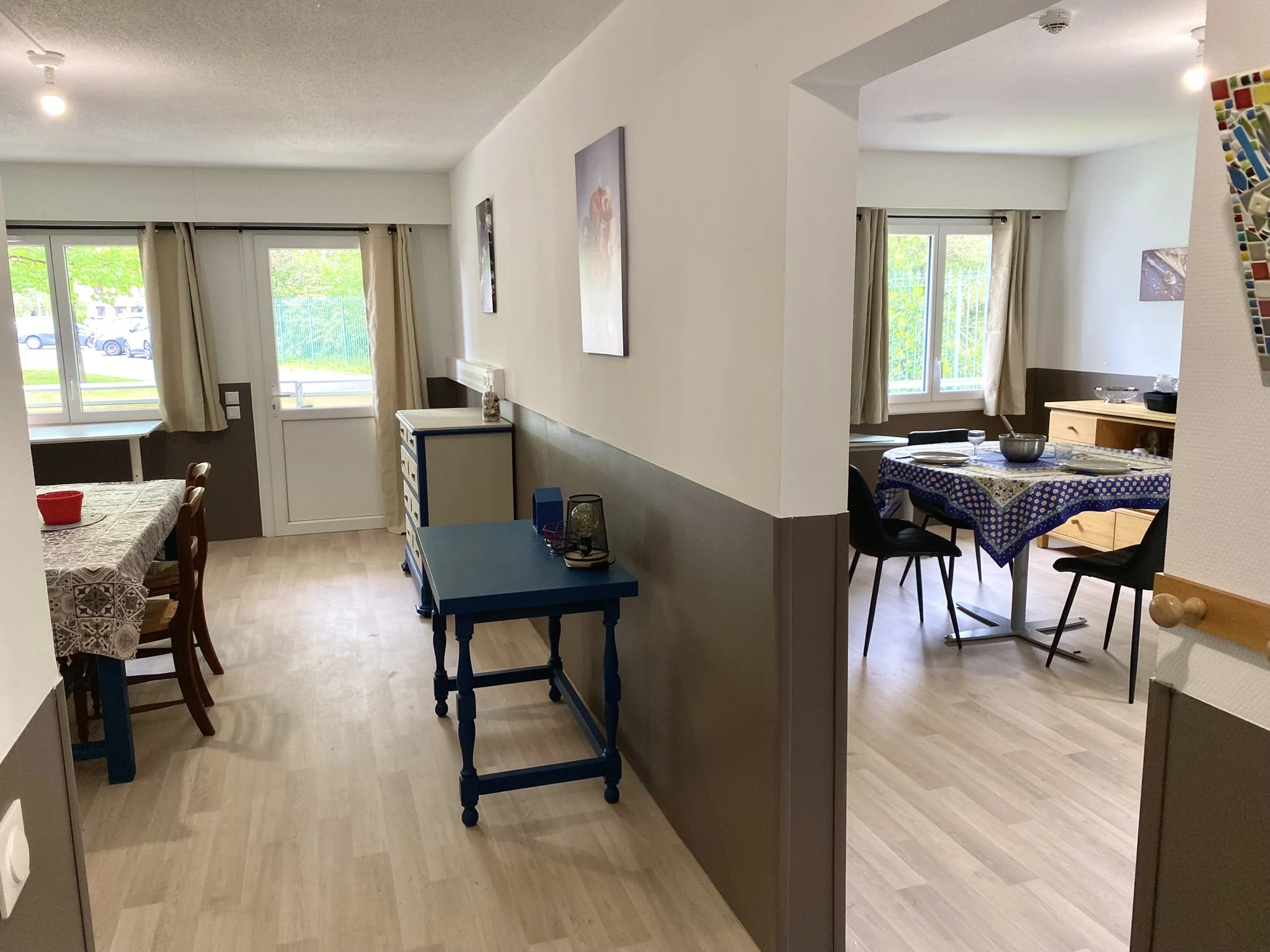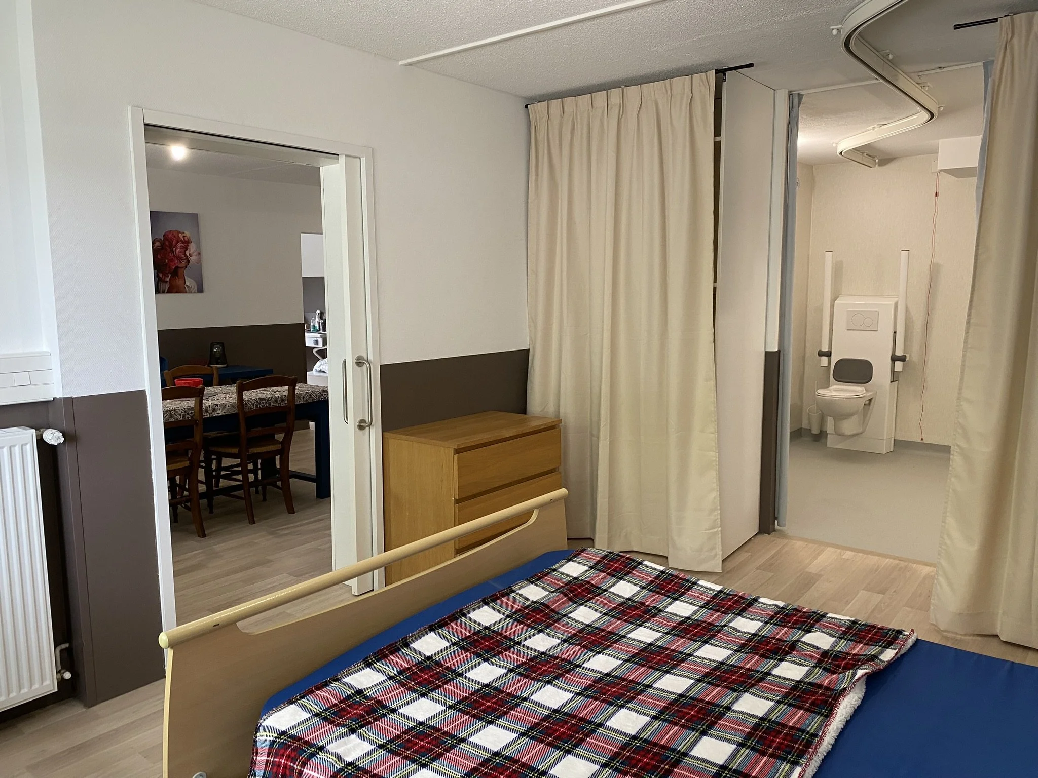 L’appartement T3, adapté et adaptable, est spacieux et peut accueillir la personne et un aidant ou de la famille. Cet entraînement à l’autonomie s’accompagne d’auto-évaluations de mises en situation et des évaluations de l’équipe pluridisciplinaire pour mesurer l’autonomie et les adaptations de compensation nécessaires. L’expérimentation permet de construire son projet de vie qu’il soit en institution ou à domicile.
