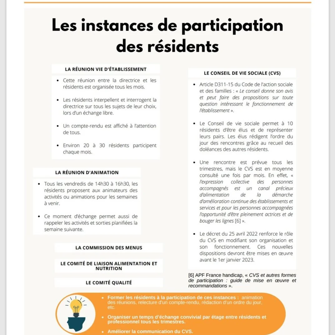 Depuis février 2022, le Foyer met en œuvre une nouvelle démarche pour les projets individuels d’accompagnement. Cette nouvelle démarche doit améliorer le recueil des demandes et besoins des résidents sur les thèmes suivants : besoins de la vie quotidienne, besoins de participation à la vie sociale et culturelle et besoins en matière d’autonomie.